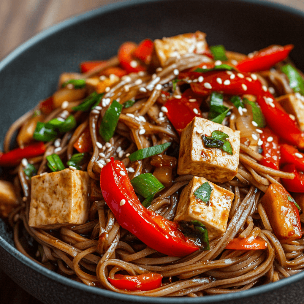 Простой и быстрый рецепт острой гречневой лапши с тофу и овощами для ужина за 20 минут