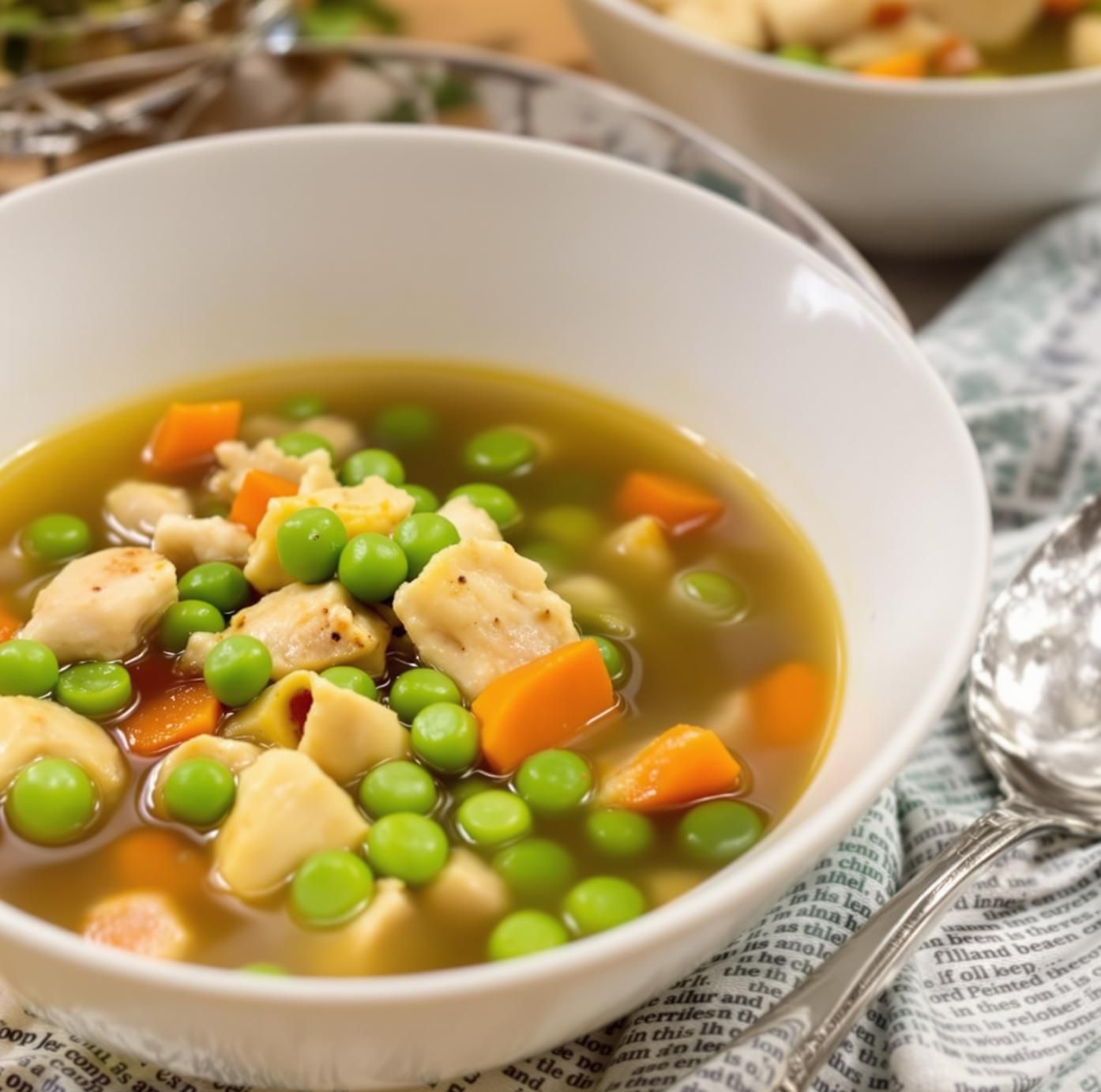 - Добавить зеленый горошек, варить ещё 10 минут до мягкости горошка.